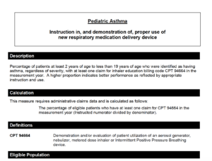 Tags: 94664, CPT 94664, device education, Inhaler Education, Measure, Measures, Pediatric, Pediatric Asthma